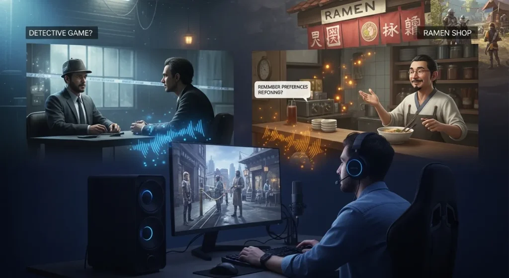 Several games have already begun implementing sophisticated voice interaction. Inworld AI partnerships with major studios have produced demos where players interrogate suspects in detective games using natural speech. The characters respond dynamically, remember previous statements, and even display personality consistent reactions to aggressive questioning.